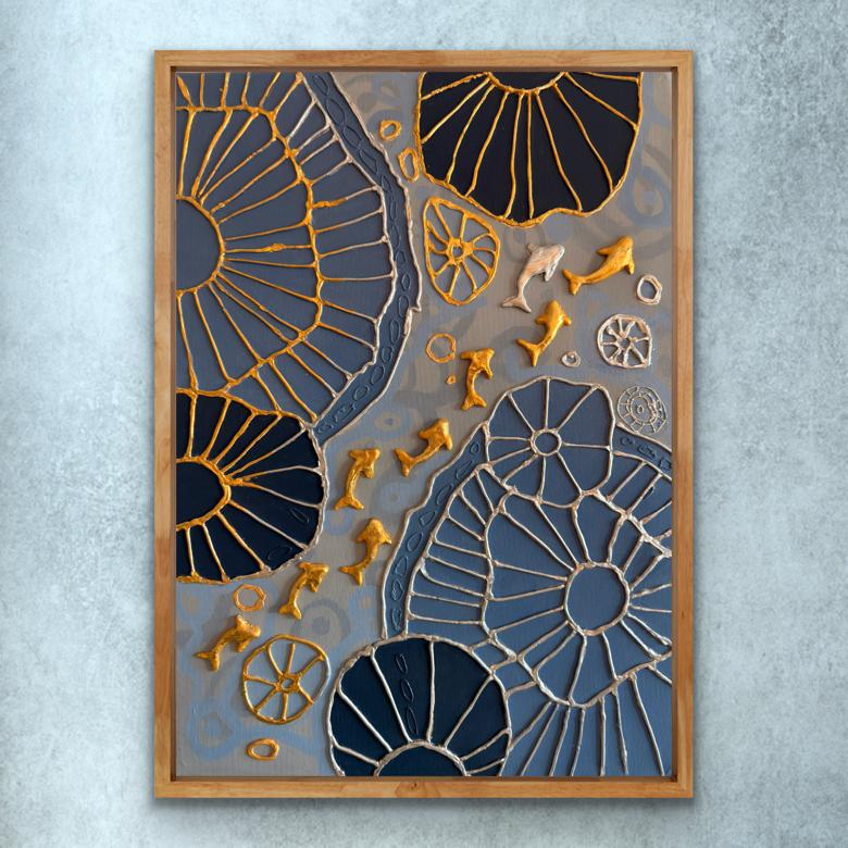 Altınla ışıldayan sekiz balık, yaşamın akışını temsil ediyor.